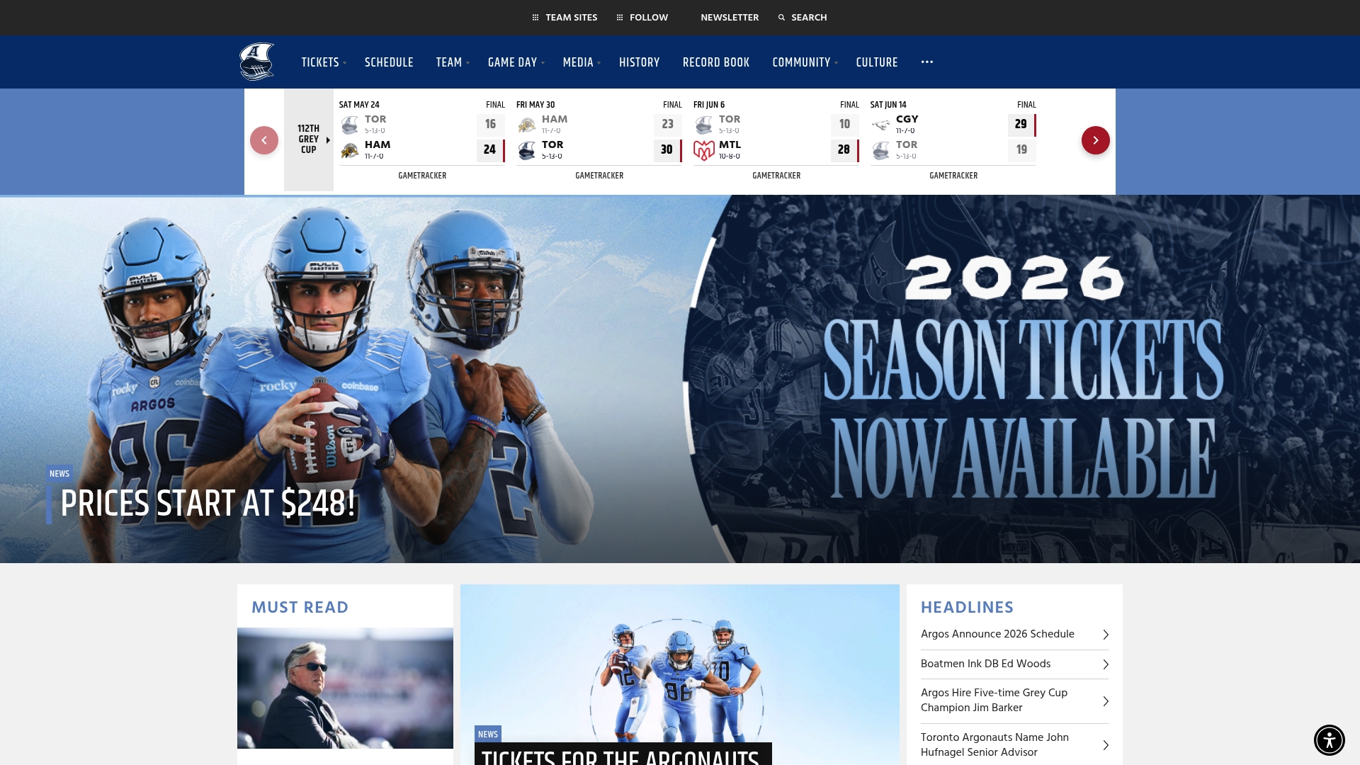 The Toronto Argonauts operate as a professional Canadian Football League team that offers season tickets, memberships, and a range of game day experiences for fans in Toronto and Ontario. Their site centralizes schedules, rosters, news, and fan engagement options for supporters.