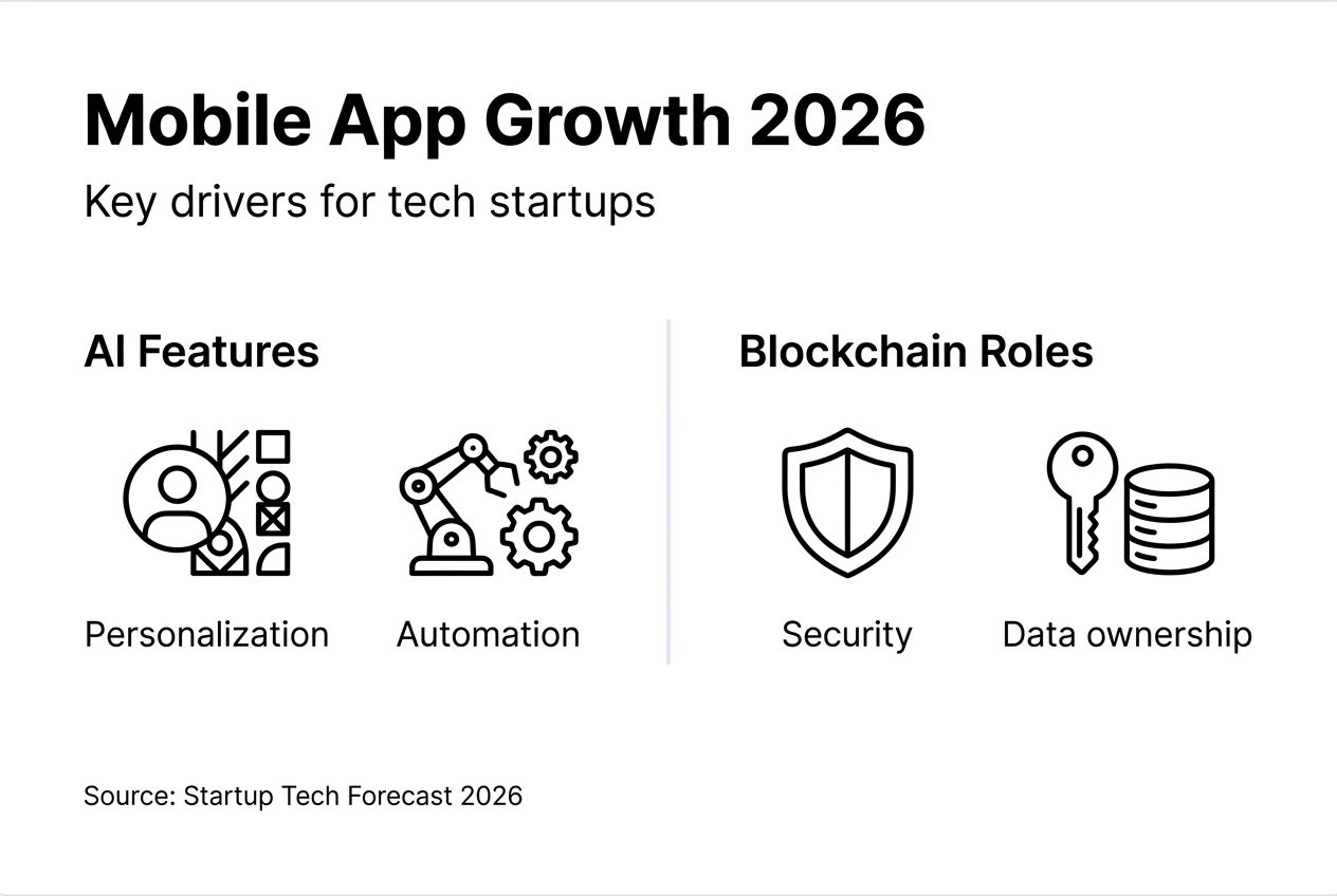 These numbers reflect a fundamental shift in what users expect from mobile applications. Static, one-size-fits-all experiences no longer satisfy customers who have encountered personalized AI interfaces and transparent blockchain-verified transactions. For startups, understanding this technological convergence isn't academic. It directly impacts your ability to acquire users, retain customers, and scale operations efficiently.