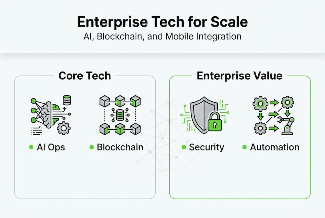 - Enterprises are adopting AI, blockchain, and mobile tech to manage complex workflows securely.